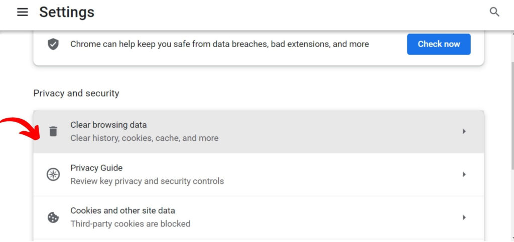 Step 4: Click on Clear browsing data under the Privacy and Security section.