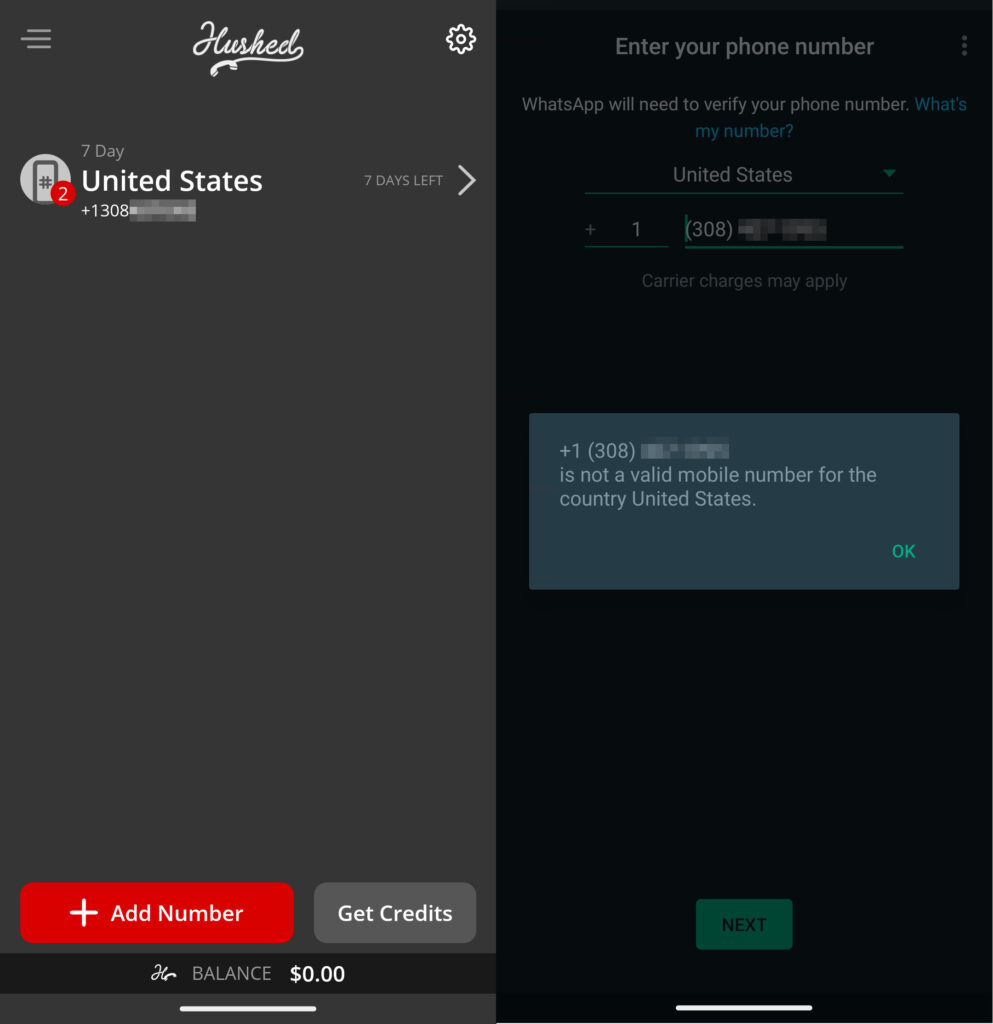 I tested using a Hushed number to register a new WhatsApp account. I've also included how I got a second phone number that successfully passed WhatsApp SMS verification and didn't go out to buy a SIM chip.
